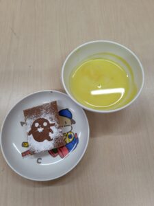 みんなで力を合わせて出来たかぼちゃのスープ、おばけの顔のパンケーキと一緒に