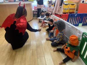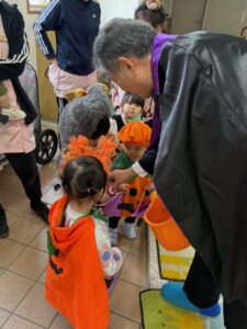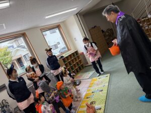 幼稚園ではハロウィンマンが登場!みんなで声を揃えて