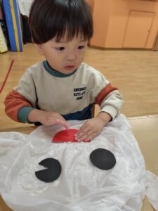 先日、ハロウィンパーティーに向けて制作を行いました。