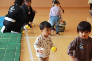 他にもかけっこをしたり、親子で触れ合い遊びをしたり、ボール集めごっこをしたり・・♫