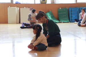 のぞみ幼稚園のホールで体操の先生と楽しく体を動かしましょう♫
