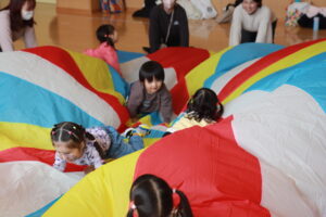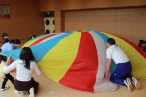 のぞみ幼稚園の年中さんは運動会でパラバルーンの演技を行います。