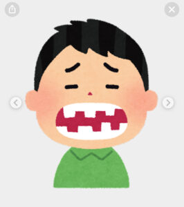 噛まないことで歯がなくなってしまった男の子の顔を見て
