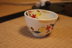 お正客さんに出される主茶碗は紅葉が描かれていて素敵なお茶碗でした😊