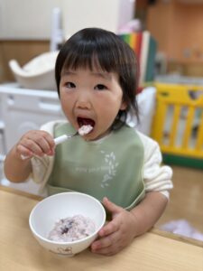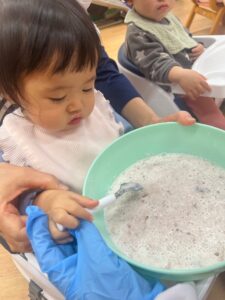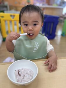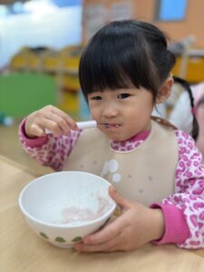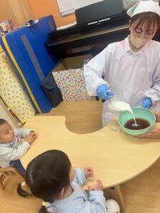 待ちに待ったおやつの時間には、みんなで力を合わせて作ったフルーチェをいただきます!