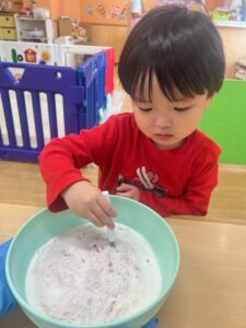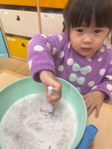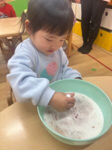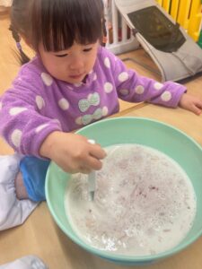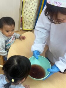 「黒っぽいけど、イチゴの香りがするね!」と教えてくれたつぼみ組さんがいました!!
