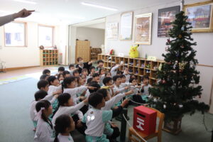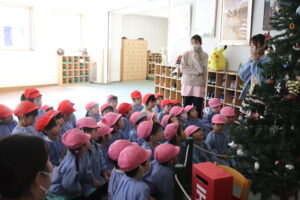 まずはクリスマスツリーを楽しむためのお約束やサンタポストのお話を聞きました。
