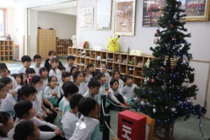 そこで学年ごとに集まってツリーの点灯式を行いました!
