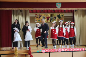 先生たちもサンタさんに変身してみんなを出迎えましたよ🎅