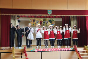 さて、ホールへ集まっていよいよクリスマス会の始まりです!