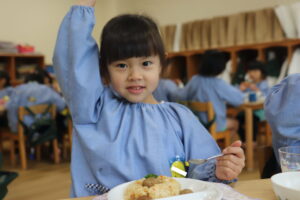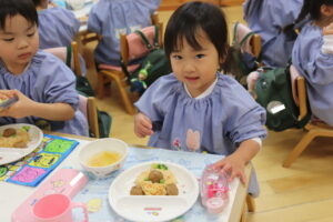 ご飯がくまさんになっていて可愛らしいお給食でした♡