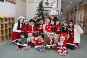 サンタさんやトナカイさんなどクリスマスのお洋服を着てきてくれたお子様方です♫