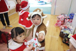 サンタさんやトナカイさんなどクリスマスのお洋服を着てきてくれたお子様方です♫