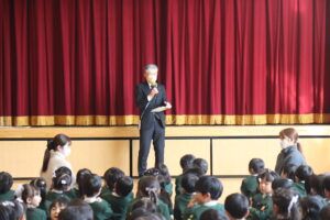 司会の先生より二学期の振り返りと冬休み中のお約束のお話がありました。