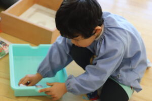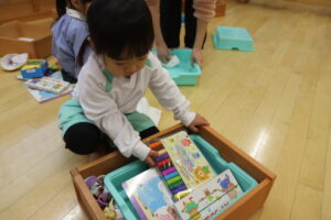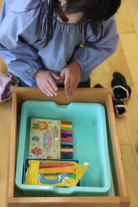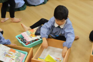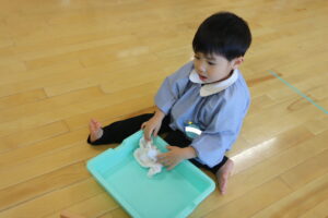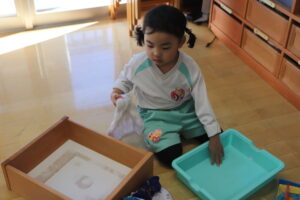 まずは一人一人お道具箱の中の埃やゴミを捨てて整理整頓を行いました。
