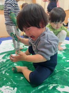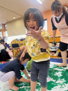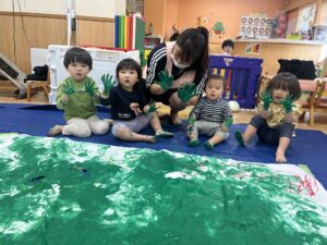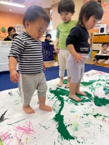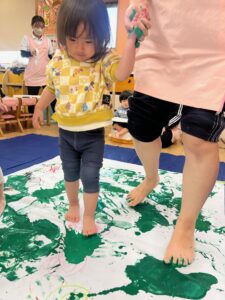 真っ白だった大きな紙が巨大な緑に大変身!!