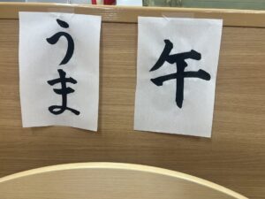 2枚目は今年の干支にちなみ、「うま」か「午」を自分で選んで先生と一緒に書きました(^∇^)