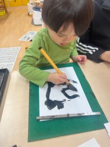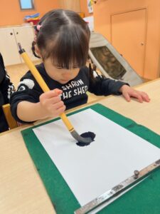 さて、ナーサリーでは昨年末に初の『書き初め』を行いました!