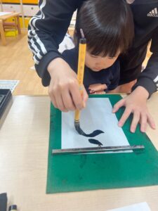 今回は書道でしたので、左利きのお友達も右手で挑戦しています。