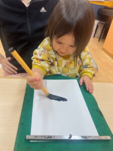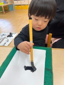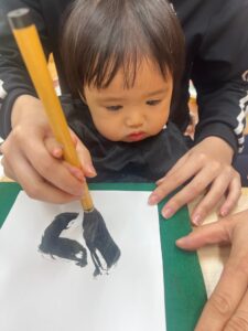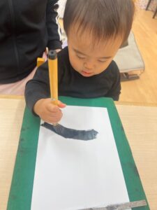 ⬇︎初めて筆を握ったのですが、持ち方がバッチリのお友達もいらっしゃいました◎