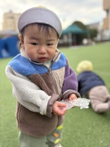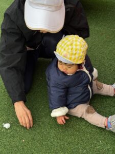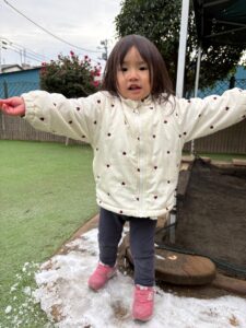 新年一発目のお外遊びでは、園庭に行きました!すると、年始に降った雪がまだ残っていて・・・