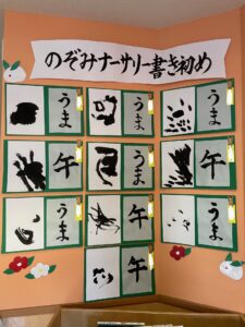 ⬇︎とっても素敵な書き初めが完成しました!ぜひ、登園された際にご覧ください♪