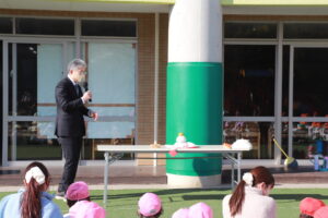 園長先生からは鏡餅について、歳神様のお話やなぜ鏡開きを行うのかなどのお話がありました。