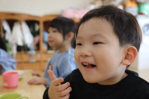 排泄練習や手洗いを済ませたらみんなでおやつを食べておかえりです。