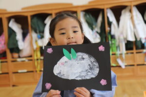 可愛らしい雪うさぎさんの完成です🐰♫
