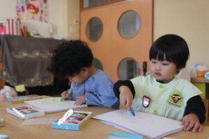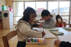 この日は初めて自分達の好きな絵を描くという活動を行いました🖍