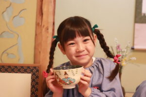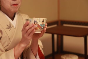 今日のお正客さんのお茶碗はひな祭りの柄🎎