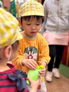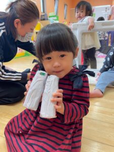 「潰さないようにそ〜っと持ってね」と言う先生の言葉の通り