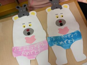 卒園を前にオムツを卒業できたお友達に、しろくまのパンツの絵本をモチーフにした卒園証書でお祝い♫